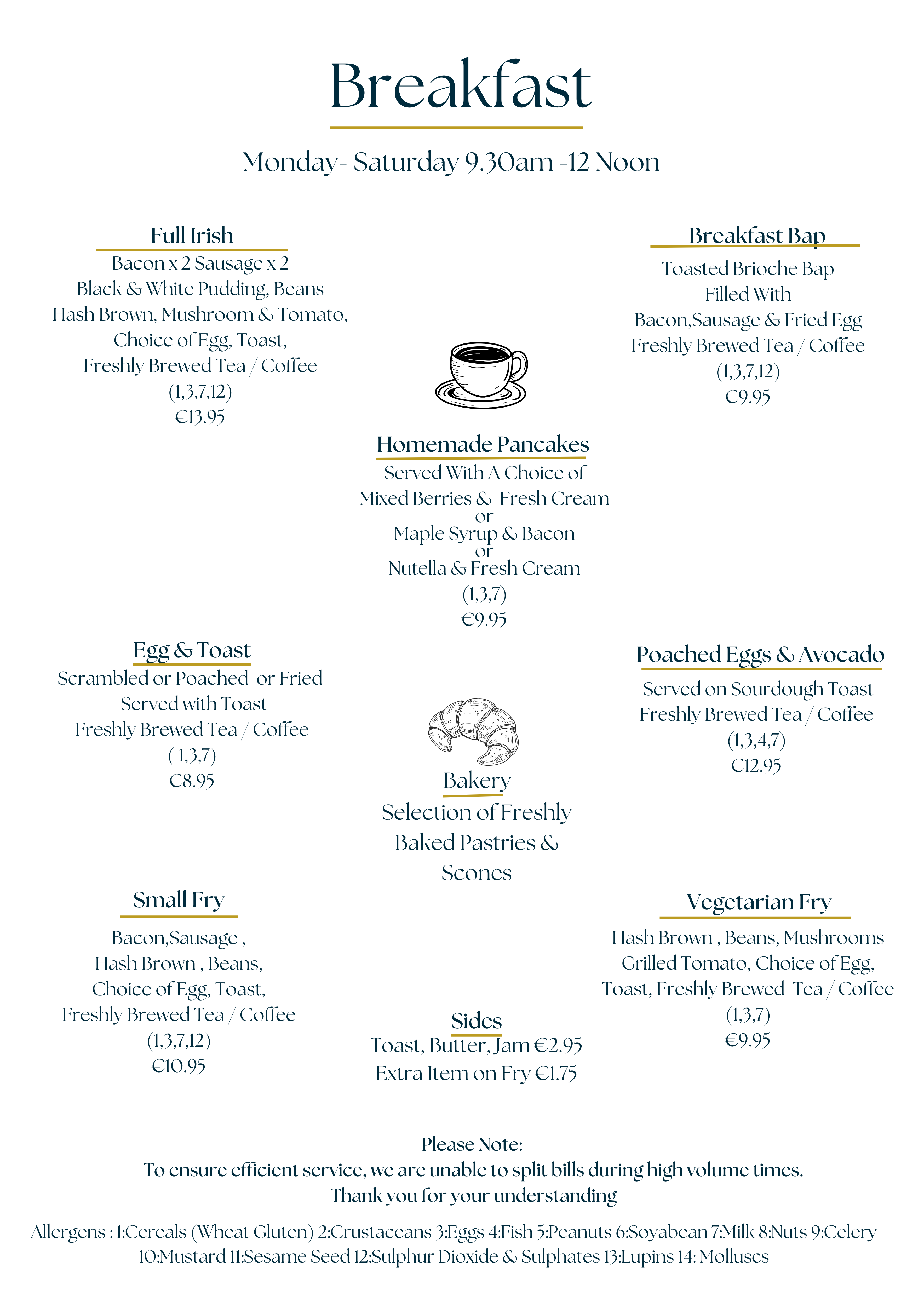 Breakfast Available Monday-Saturday 9.30am-12